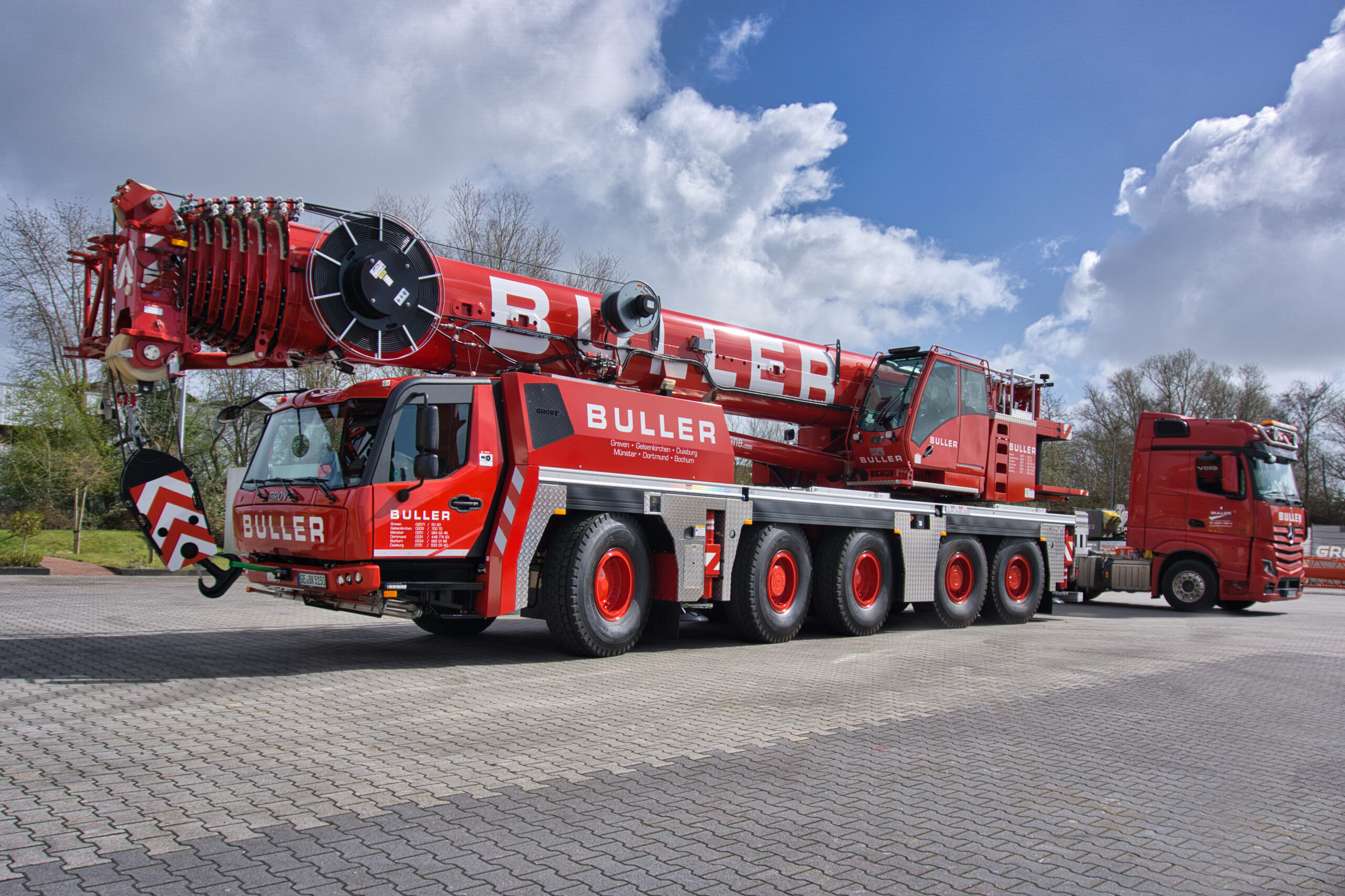 Die Buller Krane GmbH mit Hauptsitz in Gelsenkirchen sowie weiteren Standorten in Greven und Duisburg hat einen neuen Grove GMK5120L übernommen und erweitert damit gezielt ihre Mobilkranflotte. Der leistungsstarke 5Achser wird künftig überwiegend im Bau und Industrieeinsatz eingesetzt und ersetzt einen Grove GMK4100L1.